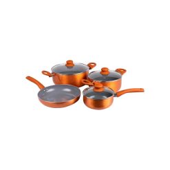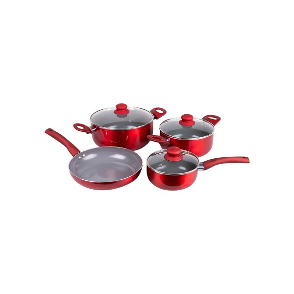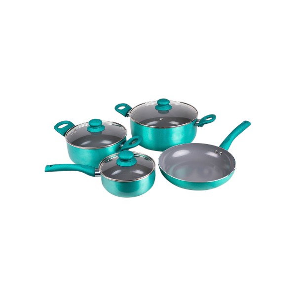 Aluminio 3.0 mm de espesor / Antiadherente cerámico o titanio ecológico libre de PTFE Y PFOA / Tapa de vidrio termo-resistente / Fondo cerámico o titanio anti-adherente / Asas y mangos siliconizados / Asas y mangos remachados ergonométricos / Apta para cocinas a inducción, eléctricas y a gas.