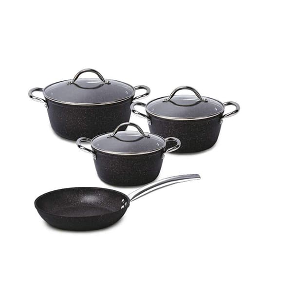 Batería de Cocina 7 Piezas Pompei de Wens fabricada en aluminio forjado de 4,0 mm, su materialidad le permite distribuir el calor de manera homogénea y eficiente, conservando la temperatura por más tiempo y disminuyendo considerablemente los tiempos de cocción. Al ser de aluminio forjado lo hace ser más rígido, no se abolla fácilmente y por consecuencia tiene mayor durabilidad.