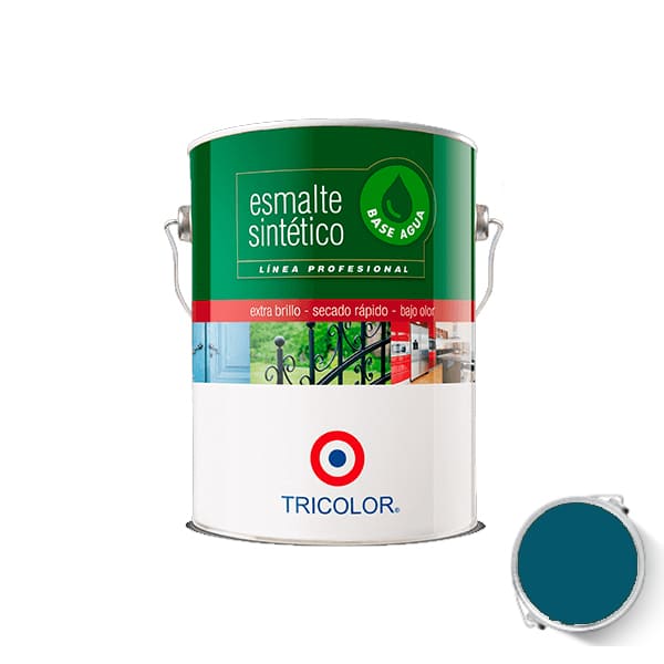 Esmalte Sintético Base Agua Color Azul Pacifico 1/4 Galón Tricolor